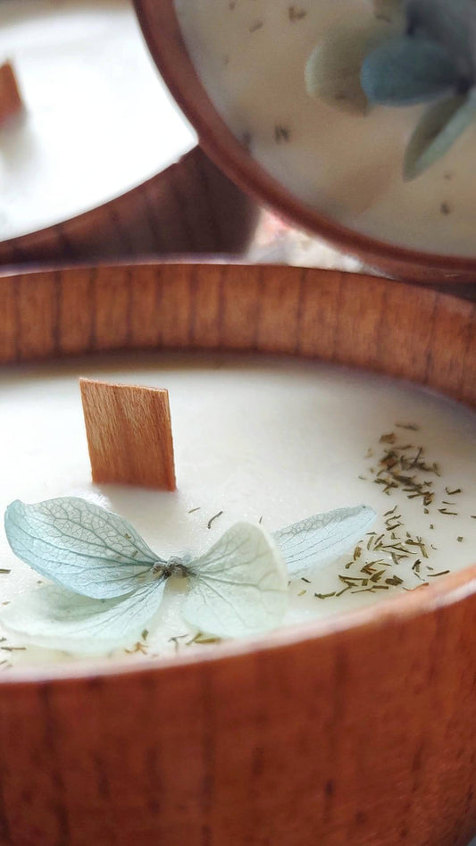 SOY CANDLE - Wooden Bowl - Wood Wick - Candle Gift