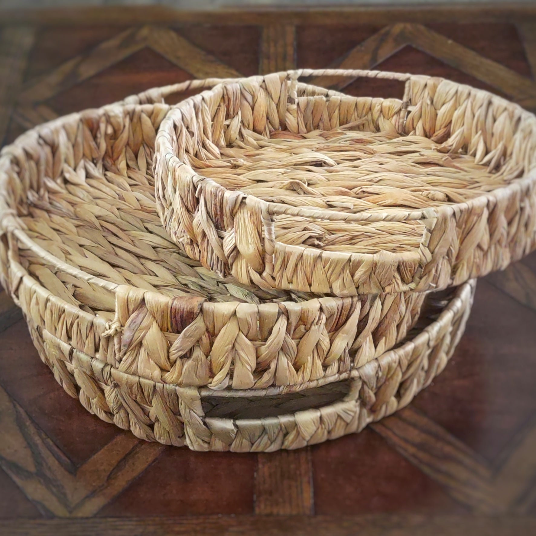 D E T A I L S: These Nested Hyacinth Trays are what my Soaps are displayed in my shop. So many of you have asked to purchase them I decided to offer them to you. They are very sturdy and versatile and look beautiful and earthy. Wonderful displaying your favorite books and candles or use as a tray making them perfect for entertaining with your friends and family.